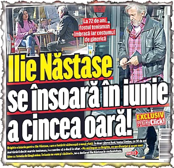 “Sunt bine cu femeia de lângă mine. În iunie ne vom şi căsători”, anunţa Ilie Năstase în exclusivitate pentru Click! la începutul lunii ianuarie. La 12 zile de când a devenit bărbat liber şi în acte, Ilie Năstase a integrat-o pe Ioana în viaţa lui de parcă i-ar fi fost dintotdeauna soţie. I-a dat cheile de la vila lui din Dorobanţi, de la maşină şi a lăsat toată averea pe mâna ei. Ioana Simion are un copil, la Constanţa, de care este foarte ataşată, de aceea nu se ştie unde se va stabili viitoarea familie.