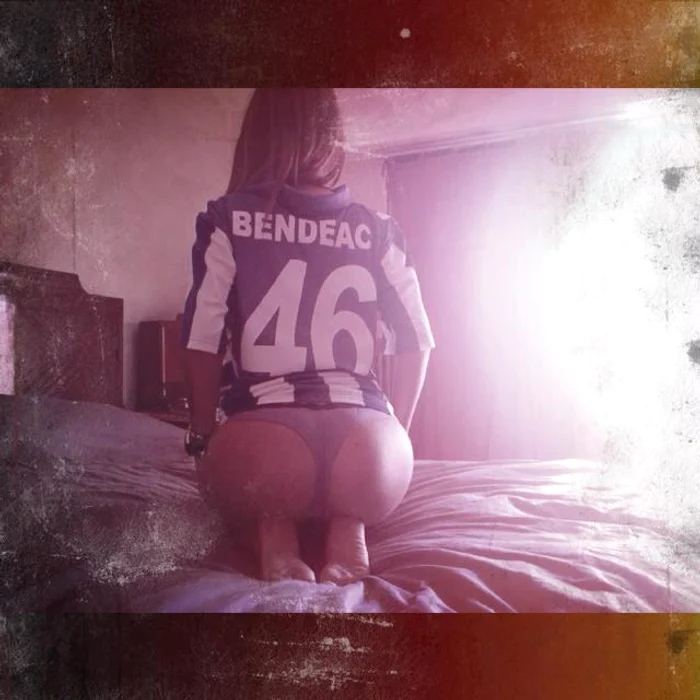 Bruneta stă într-o poziţie provocatoare, cu fundul bombat la vedere şi este îmbrăcată într-un tricou al Universităţii Craiova, inscripţionat chiar cu numele lui Bendeac. Numărul de pe tricou 46 nu prea le-a convenit fanilor, care au comentat ironic că Roxanei i se potrivea mai bine… 69.