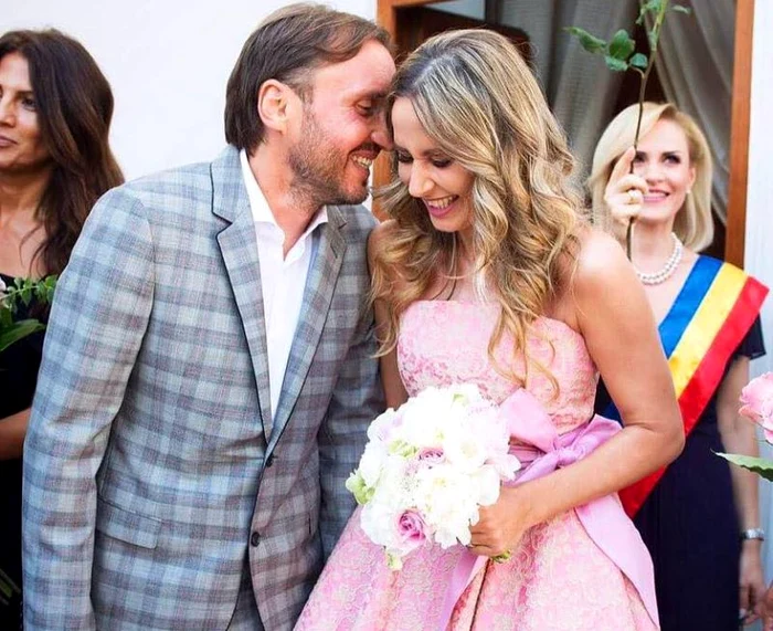 Nici în ziua cununiei, Crina nu s-a decis uşor. Ea avea deja acasă o rochie cumpărată, pe care a înlocuit-o în ultimul moment cu o alta, roz pal, semnată Marie Ollie.