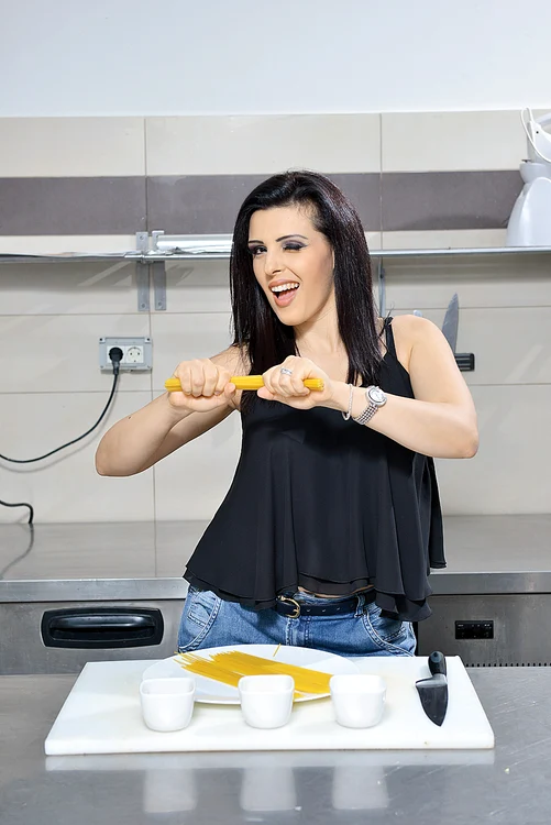 Pentru că săptămâna aceasta a avut „dezlegare” la paste, artista a pregătit o reţetă specială, în bucătăria restaurantului Cervo din Bucureşti. A avut nevoie de piept de pui, spaghete, vin alb, câţiva căţei de usturoi şi puţină smântână. Carnea a fost condimentată, pusă într-un vas termorezistent, acoperită cu vin alb şi dată la cuptor pentru circa o oră, cât să devină fragedă. Apoi a fost tăiată cubuleţe şi împreună cu sosul rămas s-au pus din nou pe foc, într-o tigaie în care s-au adăugat smântâna şi usturoiul tocat mărunt. Acest amestec a fost pus peste spaghetele fierte al dente.