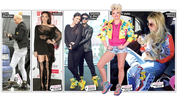 Antonia nu merge doar în pantofi sport, ci adoră şi tocurile sexy. Piesa de rezistenţă o reprezintă cizmele înalte, cu şireturi, care aparţin brandului Tony Bianco şi care costă 1.400 de lei. Lituanianca Vica Blochina (39 de ani) este o împătimită a luxului, aşa că celebrele ghete Moschino, în mare vogă anul acesta, trebuiau să ajungă şi în garderoba ei. Fosta vedetă PRO TV a plătit 6.000 de lei pentru acest moft. Cu un tarif de 15.000 de euro pentru un concert în România, Inna (29 de ani) are de unde scoate 7.000 de lei, atât cât costă tenişii-ciorap, marca Rick Owens, cu care iese la plimbare prin Bucureşti.Pe Mihaela Rădulescu (46 de ani) am lăsat-o intenţionat ultima, pentru a nu vă speria chiar de la începutul textului. Cele două perechi de cizme din cele două fotografii costau împreună, în momentul în care au fost lansate pe piaţă, aproximativ 16.000 de lei. Aşadar, ceea ce v-am prezentat mai sus însumează nici mai mult, nici mai puţin de 35.400 de lei.