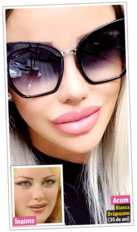 Şi Bianca Drăguşanu (35 de ani) este adepta acestei proceduri. O poză cu ea din adolescenţă ne-o înfăţişează extrem de naturală şi cu buze subţirele, însă acum frumoasa blondină are cele mai mari buze din show-biz-ul românesc. Medicul estetician le recomandă pacientelor o cantitate de substanţă în conformitate cu armonia feţei lor, însă cele mai multe dintre ele sfidează sfatul specialistului.