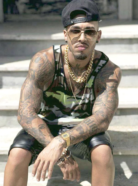 Cântăreţul este campion la tatuaje şi de-a lungul ultimilor anilor şi-a umplut pielea sistematic, centimetru după centimetru, cu zeci de simboluri, texte şi chipuri dragi. Şi-a tatuat faţa lui Smiley, prietenul său cel mai bun,  apoi chipul Anei, fosta soţie, iar mai nou, pe Antonia, noua iubită.