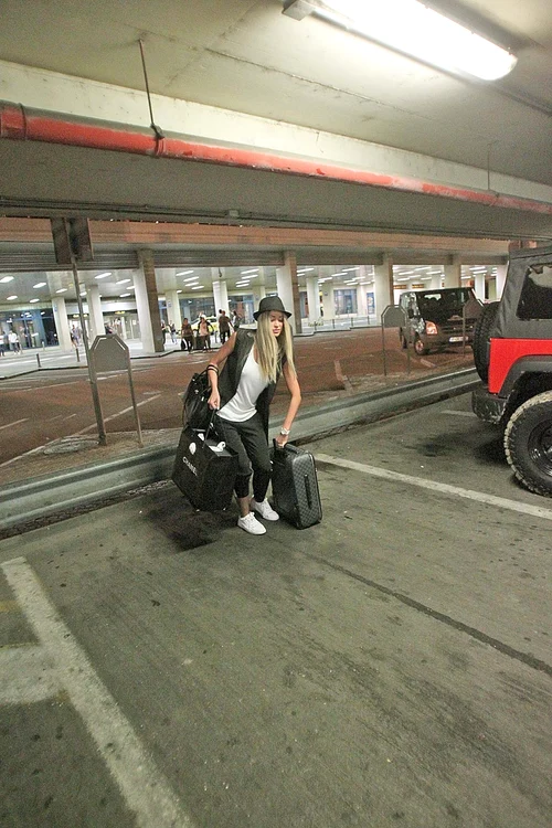 Bianca şi Victor radiau de fericire şi erau îmbrăcaţi, lejer, ca de vacanţă. Aşa cum ne-au obişnuit în ultima vreme, „Barbie şi Ken de România” erau asortaţi. Bianca purta o pereche de pantaloni de trening, un tricou alb, o vestă neagră şi o pălăriuţă şic pe cap, iar Victor pantaloni negri trei-sferturi şi un tricou alb, ce-i punea în evidenţă muşchii lucraţi la sală. Din păcate, nu ştim din ce pricină, la ieşirea din aeroport fostul băiat de la Meteo s-a enervat şi a “uitat” să-şi mai ajute iubiţica la căratul bagajelor.