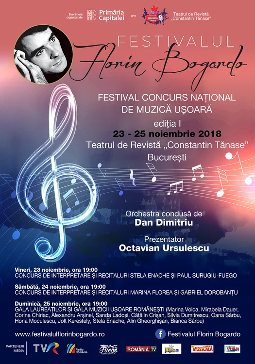 Regretatul compozitor Florin Bogardo va avea din toamnă un festival care-i poartă numele. Compozitor cu o activitate emblematică, de peste 40 de ani, cu numeroase fațete ale activității, fiind și inginer de sunet în Televiziunea Română și solist, compunând și muzică pentru filme celebre, Florin Bogardo a compus emoție, sensibilitate și piese pe care oamenii le iubesc și le apreciază și azi, ele devenind nemuritoare. Așa se face că Primăria Capitalei, prin Teatrul de Revistă „Constantin Tănase”, va organiza în perioada 23-25 noiembrie 2018, prima ediție a Festivalului Național de Interpretare „FLORIN BOGARDO”.