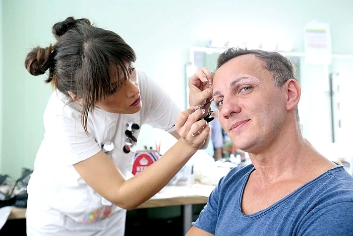 “Până să intru pe scenă, am mers în culise vreo două ore încontinuu cu acei pantofi cu toc cui, de 8 centimetri. Trebuia să merg încet, ca să nu mă dezechilibrez şi să cad. Într-un final, am reuşit să mă descurc destul de bine. Şi lentilele de contact mi-au făcut probleme pentru că le suport destul de greu. De aceea, în cele 14 ore cât am stat cu lentilele de contact a trebuit să îmi pun picături în ochi din oră în oră”, spune el.