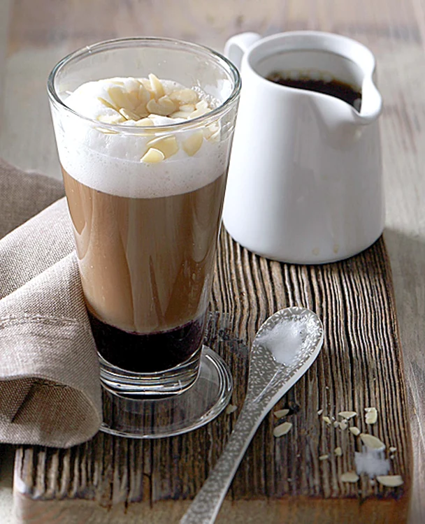 - Berry Lady. Ingrediente: 70 ml cafea, 30 ml lichior de afine, 170 ml lapte cald spumat, fulgi de migdale. Preparare: amesteci într-o cană înaltă lichiorul şi laptele spumat, torni peste ele cafeaua din ibric, iar deasupra presară fulgi de migdale.