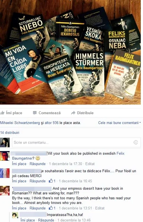 ''Împărăteasa ta nu ţi-a adus cartea în limba română? Ce mai aştepti, omule?'', a fost unul dintre mesajele fanilor virtuali.