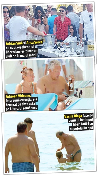 Greii din defunctul PDL au dat nas în nas la Mamaia, dar n-au discutat politică decât seara târziu. Adriean Videanu, fostul ministru al economiei, s-a relaxat sub umbrelă sorbind dintr-o bere belgiană, sub privirile soţiei. Merită acest „dezmăţ” pentru câte sacoşe de plajă i-a cărat Mioriţei Videanu. În schimb, Vasile Blaga şi-a dedicat mai tot timpul pentru distrarea nepoţelului. Purtând un slip de modă veche, buldogul îi arăta micuţului cum să ia în piept valurile mării. Fără frică, la fel cum se arunca el în vâltorile politicii.
