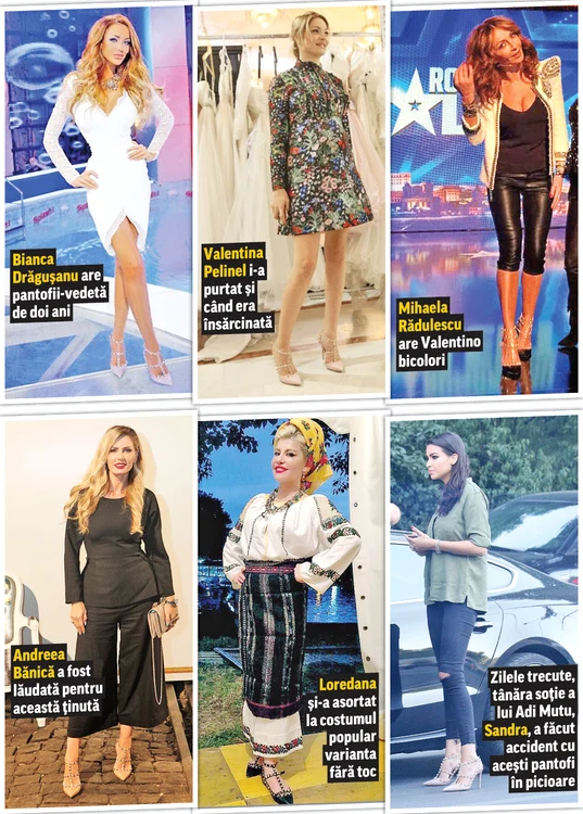 Acum două zile, Brigitte Sfăt (38 de ani) a ales să-i poarte la un eveniment de gală, la Palatul Cotroceni, unde soţul ei, Ilie Năstase (70 de ani), a fost decorat de preşedintele Klaus Iohannis cu Steaua României în grad de Comandor. Valentina Pelinel (35 de ani), Bianca Drăguşanu (34 de ani), Loredana Groza (46 de ani), Andreea Bănică (38 de ani) sau Mihaela Rădulescu (46 de ani) sunt doar câteva dintre divele care calcă în picioare cei mai la modă pantofi, un simbol al luxului.