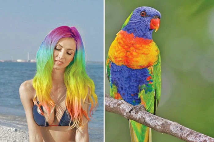 Datorită părului colorat, solista e comparată cu un păun, cu o bufniţă siberiană, cu un flamingo, cu o găină moţată sau cu un grangur. Amuzant, nu?