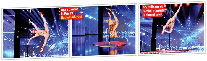 Corp perfect, senzualitate, zâmbet criminal şi un dans la bară periculos de spectaculos. Cu asta ne-a cucerit Nadia Buduruşi (34 de ani) vineri seară, la emisiunea “Românii au talent”. În prezentarea dinaintea show-ului, atleta, care este singurul instructor de dans la bară (pole dance şi pole fitness) acreditat internaţional din România, a enumerat o întreagă listă de operaţii, pe care le-a suferit de-a lungul anilor. Preţul meseriei, cum altfel? Pe lângă 3 coaste rupte, operaţii la coloană şi la genunchi, frumoasa blondă ne-a şocat când a pomenit despre două intervenţii pe cord deschis.