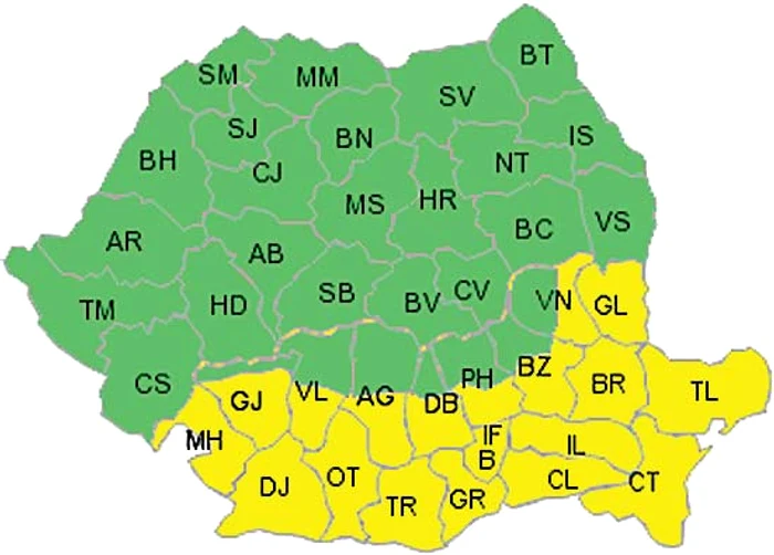 19 judeţe şi Capitala rămân şi luni sub Cod Galben
