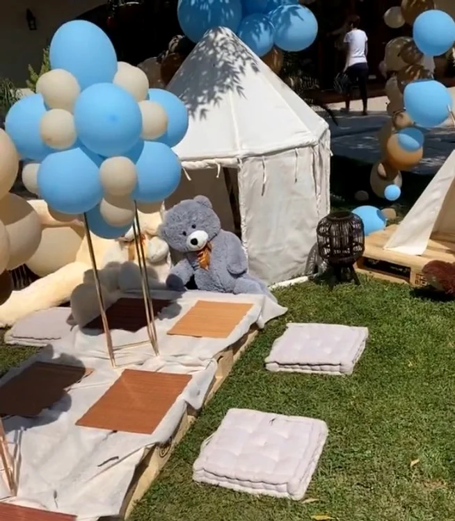 Fericiții părinți s-au dat peste cap și i-au pregătit fiului lor o petrecere fastuoasă la piscină, într-un cadru de vis. Locul a fost plin de baloane colorate și de poze ale micuțului.