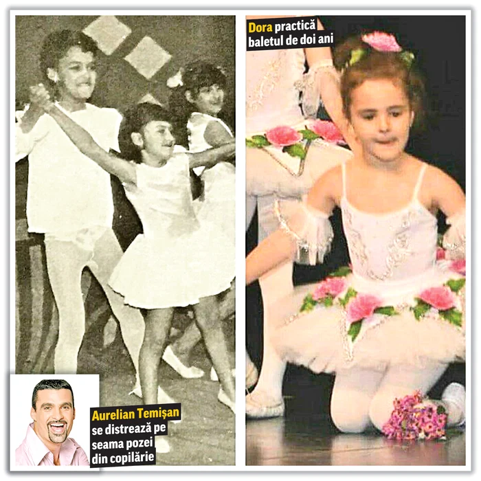 Iată că, după ani și ani, a venit rândul fetiței sale, Dora (6 ani) să urce pe scenă, în calitate de balerină, numai că pe ea o prinde de minune acest rol, ba chiar se simte ca o prințesă: ”Așa tată, așa fiică. În poza asta aveam 7 ani și îmi mușcam buza când îmi ieșea ceva bine. În schimb, Dora e foarte grațioasă”, a spus artistul. Micuța moștenește și talentul actoricesc al părinților ei, Aurelian Temişan și Monica Davidescu, ea interpretând deja câteva roluri mici, la Antenă.