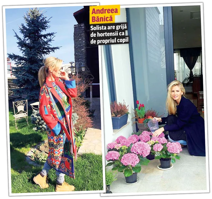 Colega ei de breaslă, Andreea Bănică (37 de ani), locuieşte într-o vilă de 250.000 €, din Cernica. Şi grădina ei e plină de brăduţi, hortensii, lalele, iar măsuţa din fier forjat îmbie la relaxare.