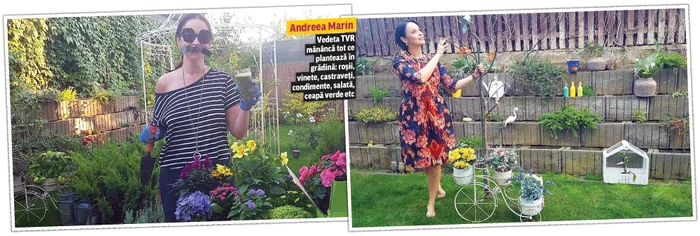 Despre grădina Andreei Marin (41 de ani) s-au spus multe, iar diva de la TVR se mândreşte mereu cu colţul ei de Rai, unde pe lângă plante ornamentale a sădit şi legume, şi condimente, pe care le foloseşte la gătit.
