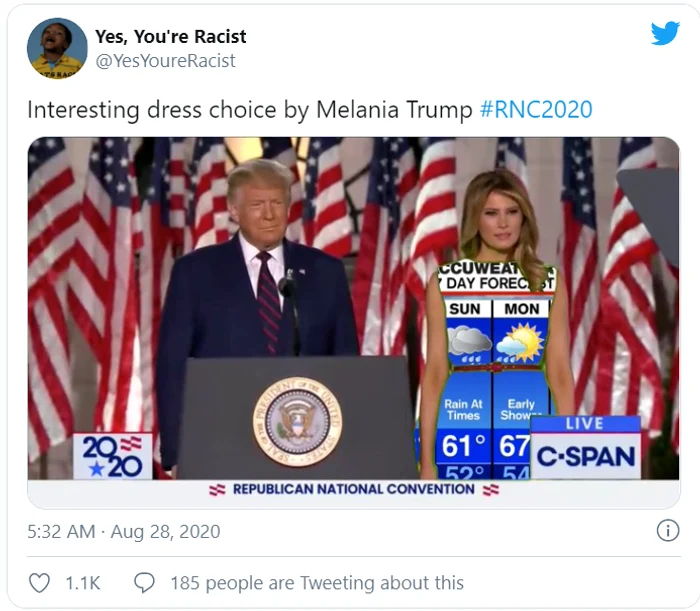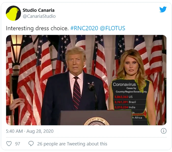 Cea de-a treia zi a Convenției Republicane a fost ziua în care Donald Trump și-a rostit discursul de acceptare a candidaturii, dar și ziua în care Melania a fost vedeta rețelelor sociale datorită rochiei pe care ales-o pentru a-și susține soțul.