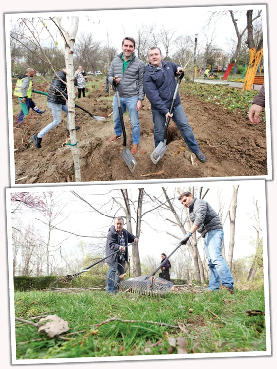 Au fost plantaţi 50 de pomi, mesteceni, platani şi tei şi sute de răsaduri de flori. ”Deja facem pauză?”, a întrebat Nicolae când i s-a spus gata, ajunge!