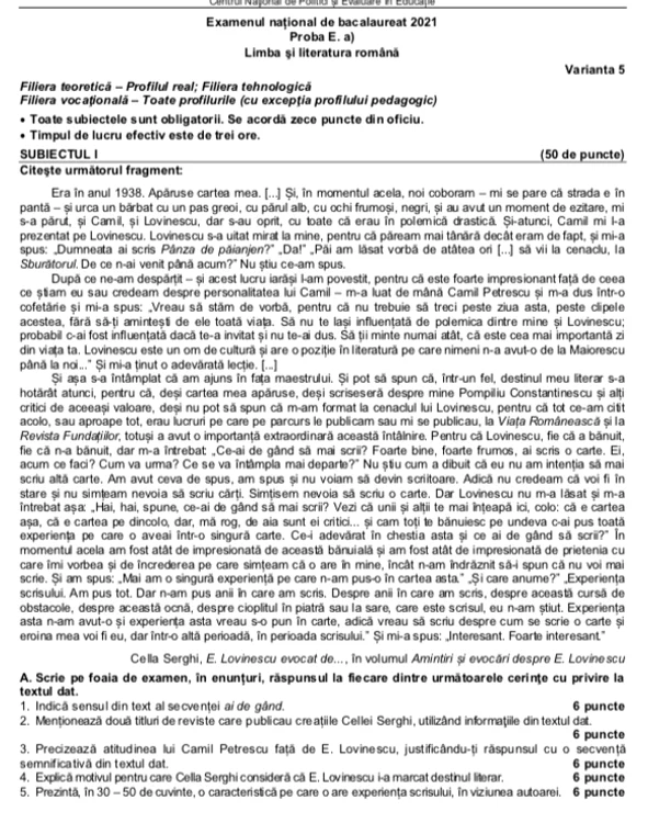 - 16 august 2021 Limba și literatura română – proba scrisă