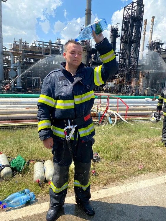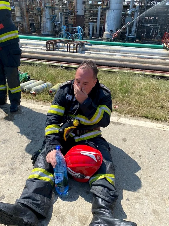 Epuizați, întinși pe asfalt, turnându-și apă în cap sau pe față, unii dintre ei având puterea să zâmbească, alții, din contră, neputând ieși din starea de concentrare și adrenalină. Pompierii care s-au luptat vineri cu incendiul devastator de la rafinăria Petromidia au fost felicitați de autorități, iar pozele lor au devenit virale.