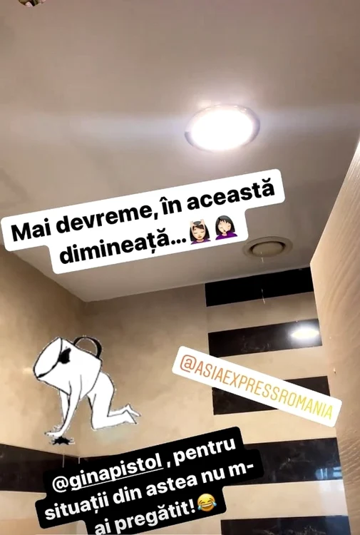 Irina i-a trimis un mesaj și Ginei Pistol, care i-a transmis soției lui Fodor înainte de plecare s-o țină la curent cu tot ce se întâmplă la Asia Express. “Pentru situații din astea nu m-ați pregătit!”, i-a scris Irina Ginei Pistol, în același Instastory.