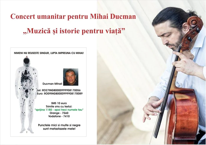 "Muzică și istorie pentru viață” este concertul caritabil care se va desfășura în 13 septembrie, începând cu ora 18:00, la Muzeul Național de Istorie. În cadrul evenimentului, violoncelistul Adrian Naidin va susține un recital de o oră, pentru a contribui la salvarea vieții lui Mihai Ducman, un bărbat de 52 de ani diagnosticat cu melanom malign stadiul IV metastazat.